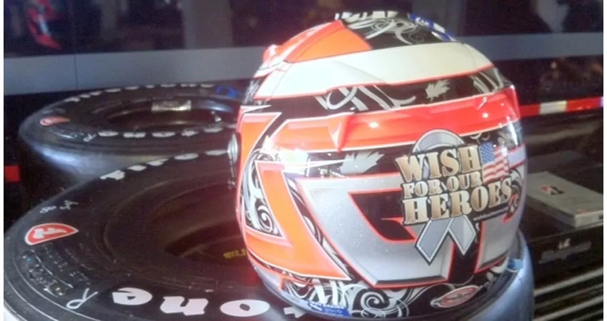 This helmet will be worn by Alex during the 2013 Honda Grand Prix of St. Petersburg race weekend. Alex approached WISH for OUR HEROES two weeks ago when Alex met SPC Charlie Lemon, a WISH for OUR HEROES volunteer and double-amputee (wounded in Iraq in 2009). Alex was so inspired by Charlie’s story and WISH for OUR HEROES’ mission that he agreed to design a special WISH for OUR HEROES helmet and wear the helmet while racing during the 2013 Honda Grand Prix of St. Petersburg, then donate the helmet to WISH for OUR HEROES to raise money for military members facing hardship. There is no other Alex Tagliani WISH for OUR HEROES helmet in existence, and we are encouraging every race fan to bid! Our goal is to raise enough money from the proceeds of this helmet to assist many military families facing hardship (food, shelter, transportation, child needs). We cannot thank Alex enough for this unbelievable gesture!!!!