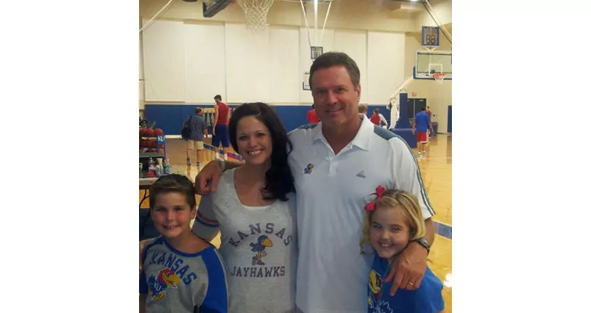 11 yr-old, Madison, of Topeka, has cystic fibrosis and is in need of a lung transplant. This sweet and very brave little girl is the daughter of two veteran National Guard soldiers, and spends her days attached to oxygen doing things a typical 11-year-old girl does, like watching televison, swimming and coloring with her younger brother Keegan. While awaiting a timeframe for her lung transplant, she expressed a wish to meet The University of Kansas basketball coach, Bill Self. Family friend, Gold Star Wife Melissa Jarboe, contacted Wish For Our Heroes Inc. to see if we could assist in making Madison’s wish come true, and today we are proud to share this photo of a very happy Madison, who was able to meet both Bill Self and the entire Kansas Men’s Basketball team!